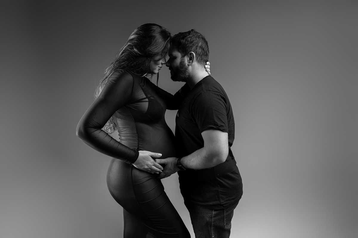 O ensaio gestante em estúdio, em Ipatinga, seguiu esse ritmo. Sem pressa, sem excesso. Apenas o necessário para que a essência desse momento aparecesse com clareza.